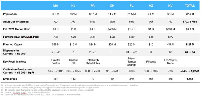 | · | Recently Closed Acquisition of Liberty Health Sciences, Adding 31 Retail Dispensaries, the Fourth Largest Footprint in Florida |